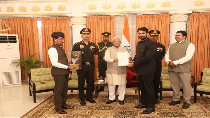 सैनिक कल्याण हेतु राशि संग्रहण में उत्कृष्ट कार्य पर महामहिम राज्यपाल श्री पटेल द्वारा कलेक्टर हिमांशु चंद्रा सम्मानित