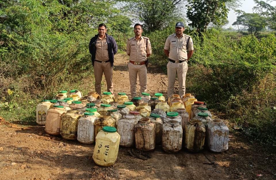 अवैध मदिरा के विरुद्ध आबकारी विभाग की कार्रवाई, 850 किलो महुआ लाहन के साथ 15 लीटर अवैध मदिरा जप्त