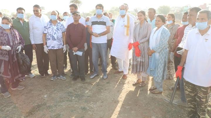 जन सहयोग से जल संवर्धन के तहत ग्वालटोली तालाब पर स्वच्छता के लिए किया श्रमदान।