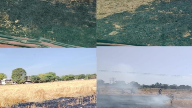 रानपुर में शॉर्ट सर्किट से गेहूं के खेत में लगी आग, एक बीघा फसल जलकर राख।