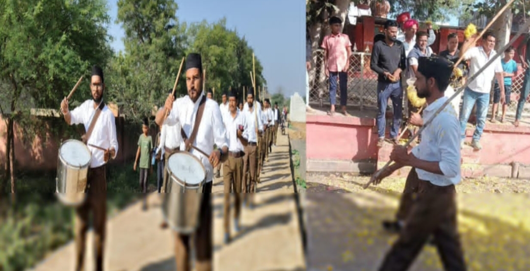 हरवार में पहली बार ऐतिहासिक पथ संचलन, ढोल की थाप पर गूंजा गांव, पुष्प वर्षा से हुआ स्वागत।