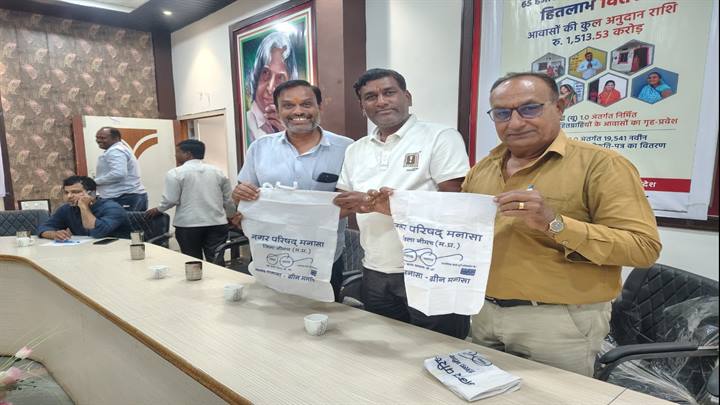 नगरीय निकायों में स्वच्छता की दीपावली अभियान मनासा में कपडे के थेले वितरित