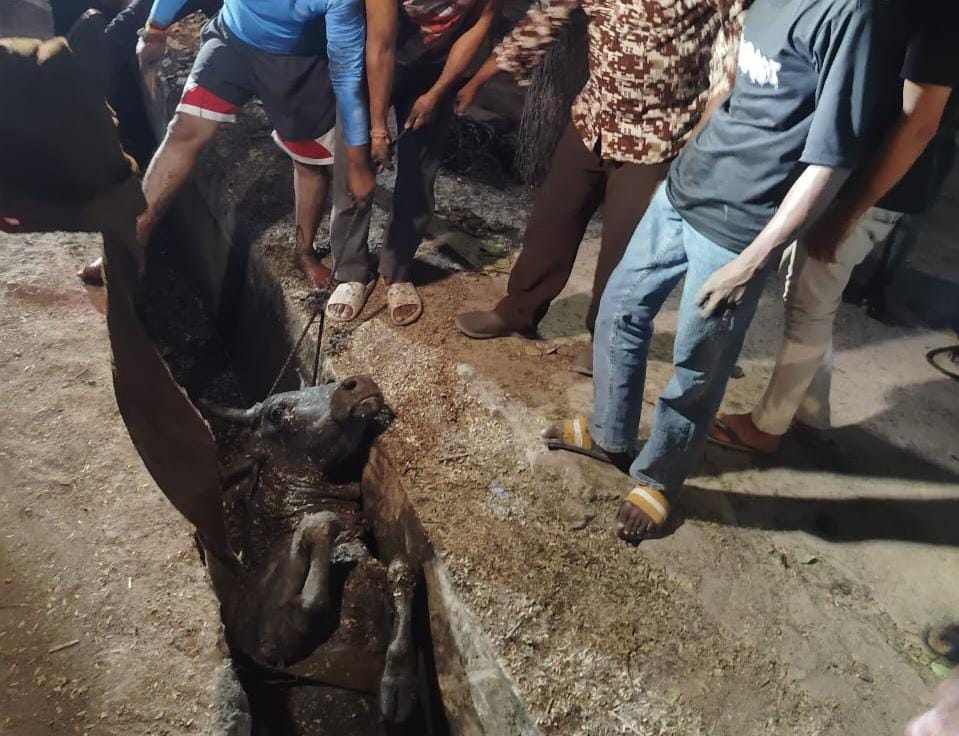 वार्ड 5 खुले नाले में गिरा बैल एक घण्टे की मशक्कत के बाद निकला, वार्डवासियों ने की खुले नाले को ढकने की मांग