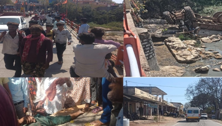 अठाना की पुरानी पुलिया पर ट्रैक्टर-ट्रॉली पलटी, चालक गंभीर घायल।