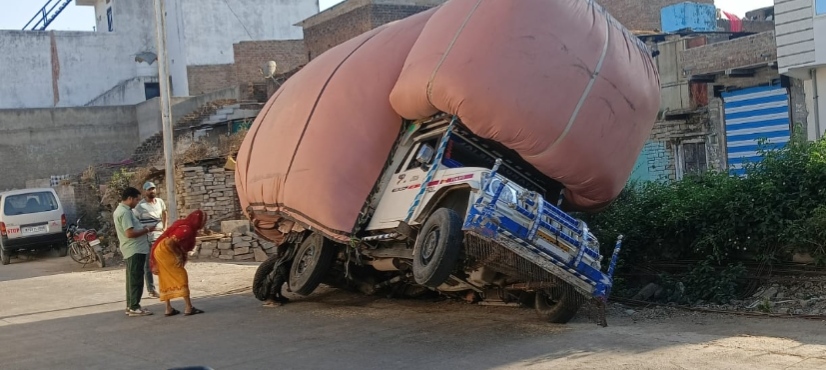 अवैध परिवहन जारी, ओवरलोड पिकअप पलटने से खुली पोल, कलेक्टर के आदेश के बाद भी जावद-अठाना मार्ग से लगातार निकल रहे भूसे से भरे वाहन।