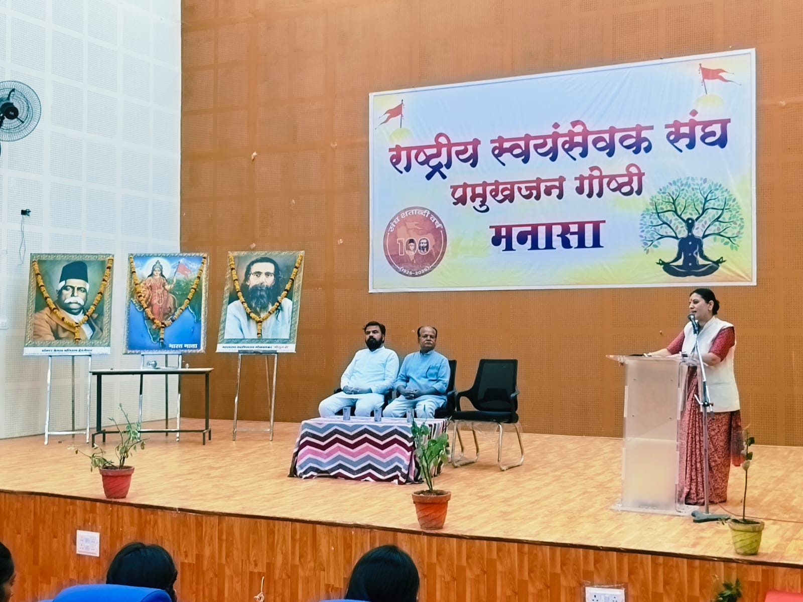 मनासा। नगर में आयोजित “प्रमुख जन गोष्ठी (मातृशक्ति)” कार्यक्रम में समाज के विभिन्न वर्गों की प्रभावी सहभागिता रही। कार्यक्रम में मातृशक्ति, युवाशक्ति एवं प्रबुद्धजनों की उपस्थिति ने वातावरण को विशेष रूप से प्रेरणादायी बना दिया। कार्यक्रम का शुभारंभ भारत माता के समक्ष दीप प्रज्वलन के साथ हुआ। इस अवसर पर मुख्य वक्ता डॉ. माला सिंह ठाकुर ने अपने उद्बोधन में राष्ट्रीय स्वयंसेवक संघ की 100 वर्षों की गौरवपूर्ण यात्रा पर प्रकाश डालते हुए कहा कि संघ ने समाज के संगठन, सेवा और संस्कार के माध्यम से राष्ट्र निर्माण में महत्वपूर्ण भूमिका निभाई है। उन्होंने आगे कहा कि वर्तमान समय में समाज परिवर्तन के लिए “पंच परिवर्तन” अत्यंत आवश्यक है, जिसमें व्यक्ति, परिवार और समाज के स्तर पर सकारात्मक बदलाव लाने की आवश्यकता है। यह परिवर्तन केवल विचारों तक सीमित न रहकर व्यवहार में उतरना चाहिए। डॉ. ठाकुर ने अपने वक्तव्य में संघ की आगामी संगठनात्मक योजनाओं की भी चर्चा करते हुए बताया कि समाज के प्रत्येक वर्ग— विशेष रूप से मातृशक्ति और युवाशक्ति— की सक्रिय भागीदारी से सम्भव हो पाएगा।